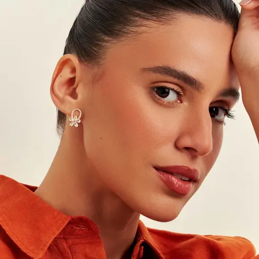BRINCO DE FLOR EM ZIRCÔNIAS PRATA RODINADA