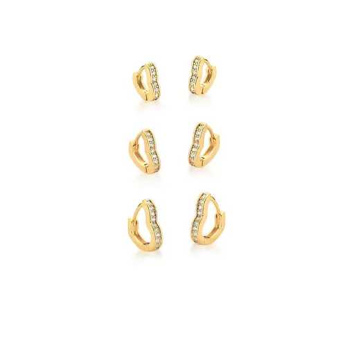 KIT TRÊS PARES DE BRINCO CORAÇÃO COM ZIRCÔNIAS