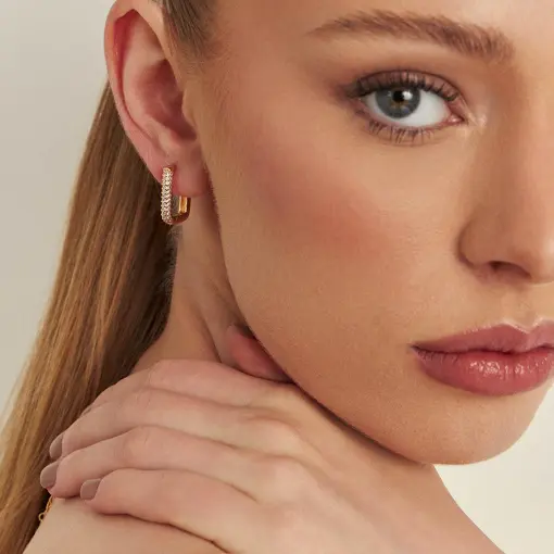 ARGOLA RETANGULAR COM ZIRCÔNIAS