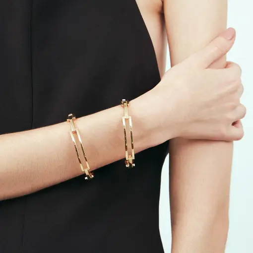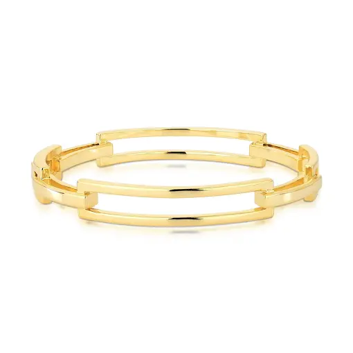 BRACELETE RETANGULAR INTERCALADO E VAZADO BANHADO A OURO