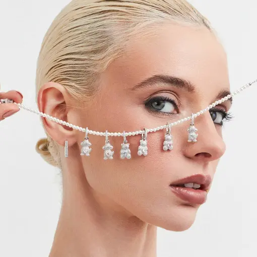 BRINCO CURVO E VAZADO EM CINCO VOLTAS COM ZIRCÔNIAS