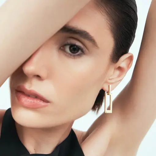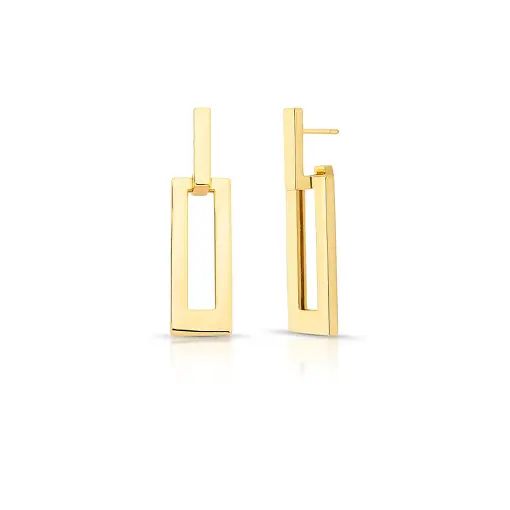 BRINCO RETANGULAR LISO E VAZADO BANHADO A OURO