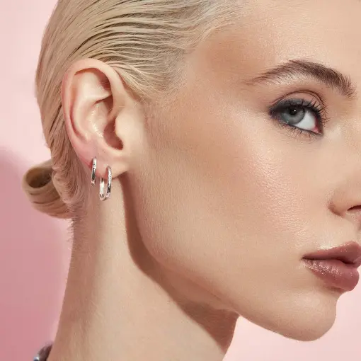 ARGOLA QUADRADA LISA E PONTO DE LUZ PRATA RODINADA