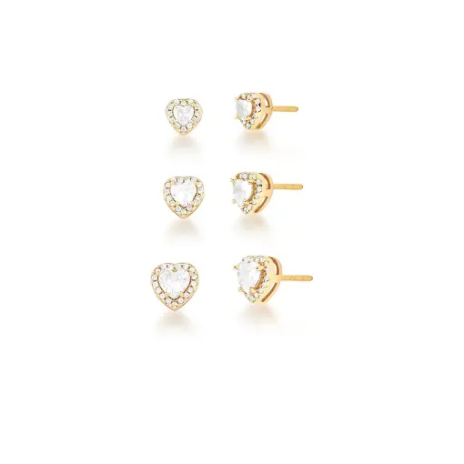 KIT TRÊS PARES DE BRINCO DE CORAÇÃO BANHADO A OURO
