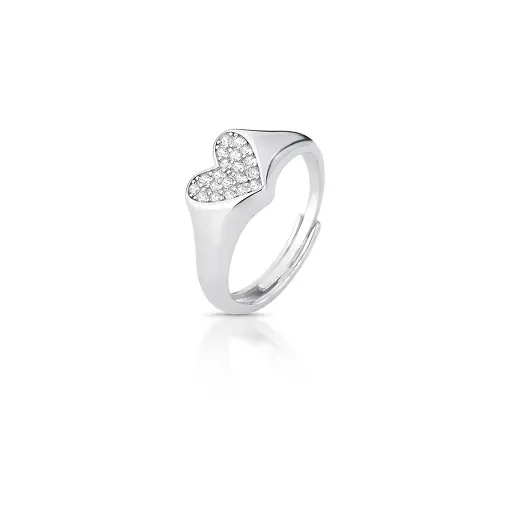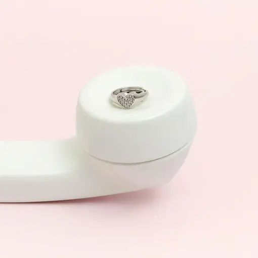 ANEL DEDO MÍNIMO REGULÁVEL DE CORAÇÃO PRATA RODINADA