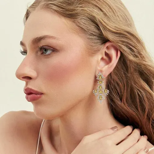 BRINCO PÊNDULO VAZADO COM CRISTAIS E ZIRCÔNIAS