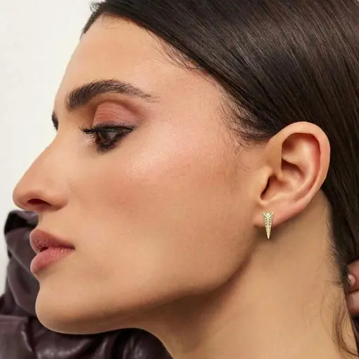 BRINCO TRIANGULAR CRAVEJADO DE ZIRCÔNIAS BANHADO A OURO