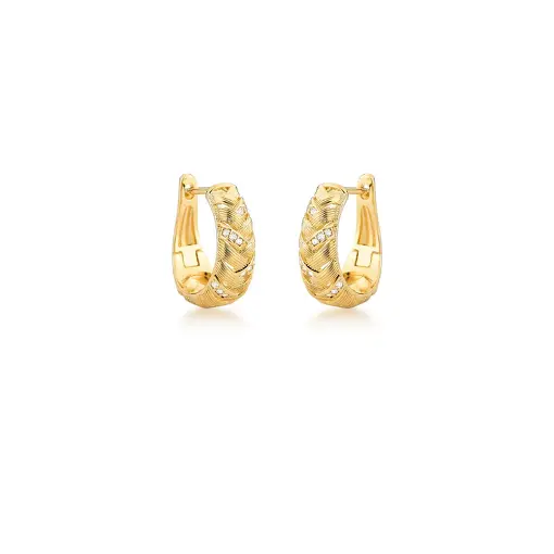 ARGOLA TRANÇADA LISA E ZIRCÔNIAS BANHADA A OURO