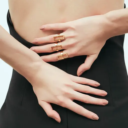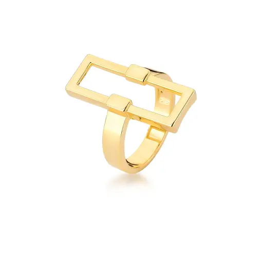 ANEL COM RETANGULAR VAZADO BANHADO A OURO