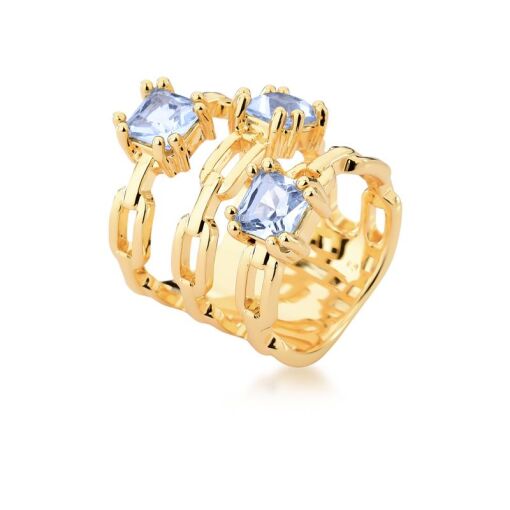 ANEL ABAULADO E VAZADO COM DUAS GOTAS EM CRISTAL