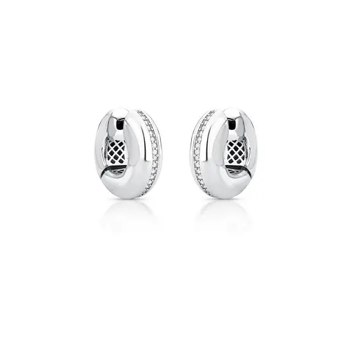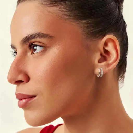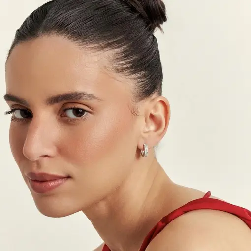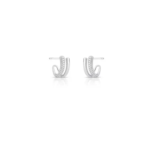 ARGOLA DUAS FILEIRAS COM ZIRCÔNIAS BRANCAS FOLHEADA A RÓDIO