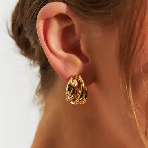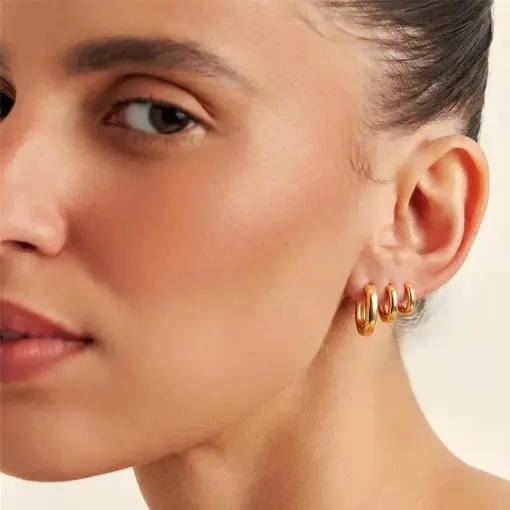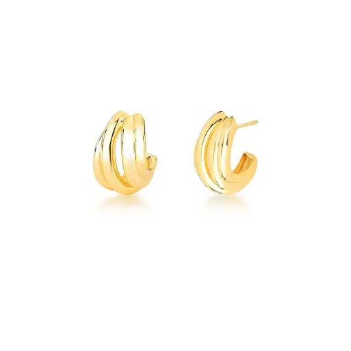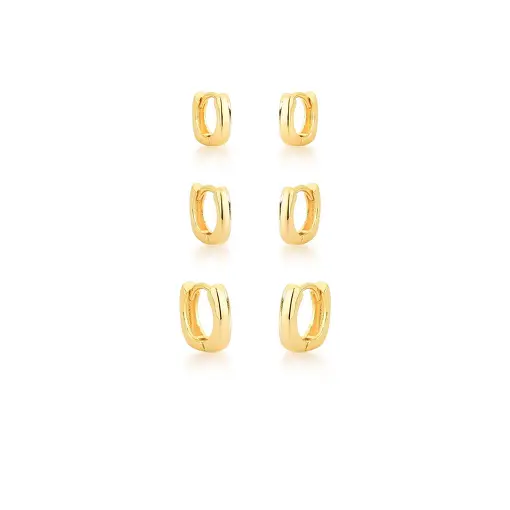 KIT TRÊS PARES DE ARGOLAS QUADRADAS LISA BANHADA A OURO