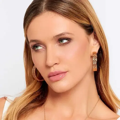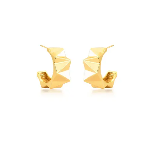 BRINCO MEIA ARGOLA GEOMÉTRICO E TRABALHADO BANHADO A OURO