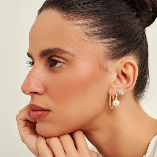 ARGOLA REDONDA COM CRISTAIS PÉROLA SHELL E ZIRCÔNIA