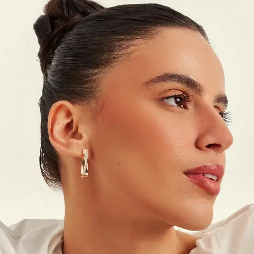 ARGOLA OVAL EM "X" COM ZIRCÔNIAS