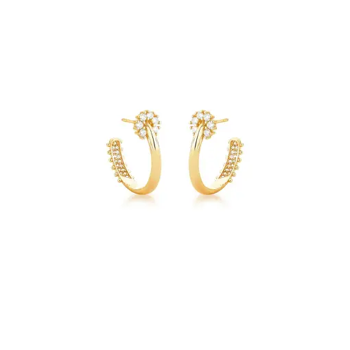 MEIA ARGOLA COM FLOR E DETALHE CRAVEJADO