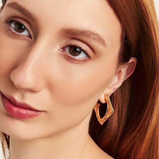 ARGOLA GEOMÉTRICA LISA E VAZADA BANHADA A OURO