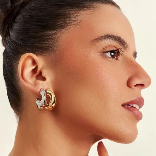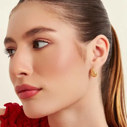 MEIA ARGOLA DE GOTA VAZADA E TEXTURIZADA