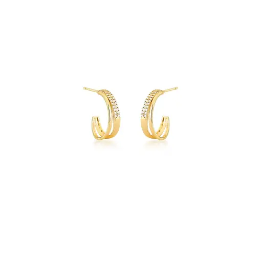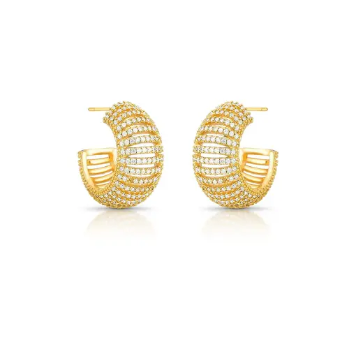 MEIA ARGOLA CURVA E VAZADA COM ZIRCÔNIAS