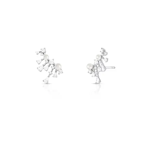 BRINCO EAR CUFF COM CRISTAIS E ZIRCÔNIAS PRATA RODINADA