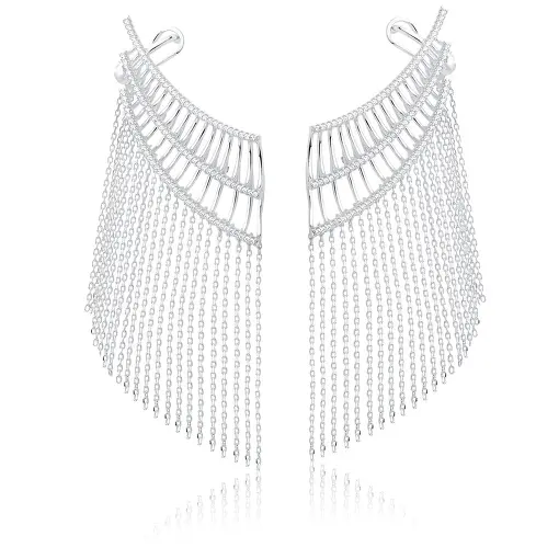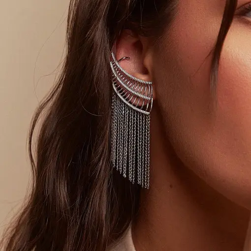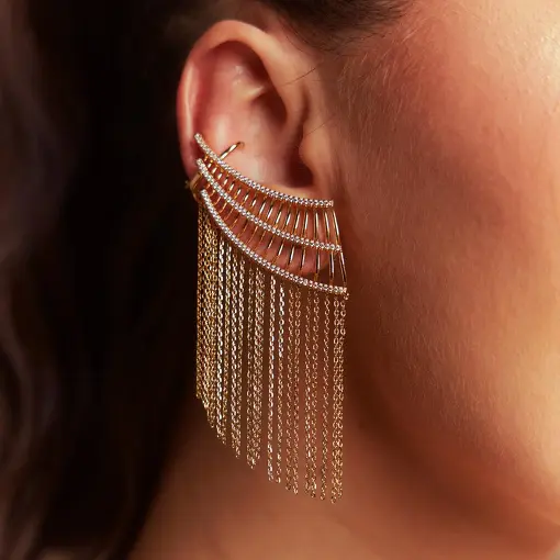 BRINCO EAR CUFF CRAVEJADO COM FRANJAS LISAS