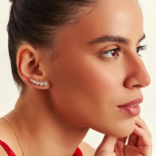 BRINCO EAR CUFF CRAVEJADO DE ZIRCÔNIAS PRATA RODINADA