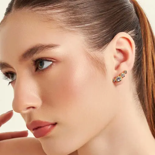 BRINCO EAR CUFF COM CRISTAIS REDONDOS
