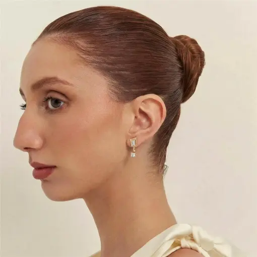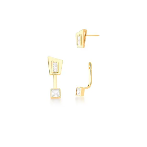 BRINCO EAR JACKET COM ZIRCÔNIAS BAGUETES BRANCAS BANHADO A OURO