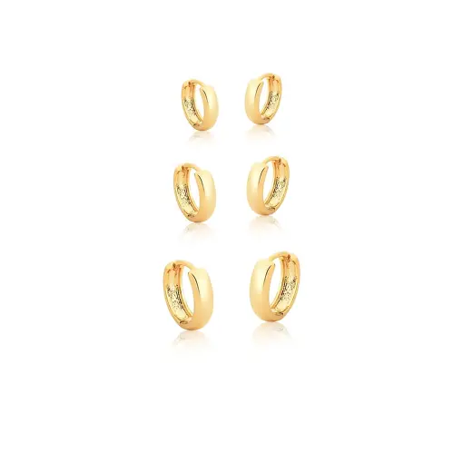 KIT TRÊS PARES DE ARGOLAS LISAS BANHADO A OURO