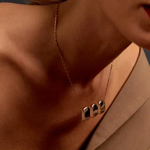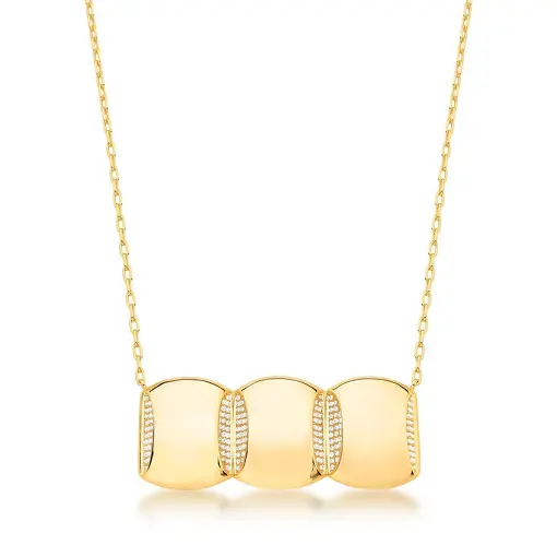 COLAR COM PINGENTE QUADRADOS LISOS E ZIRCÔNIAS BANHADO A OURO