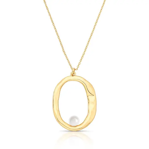 COLAR COM PINGENTE OVAL E VAZADO COM PÉROLA