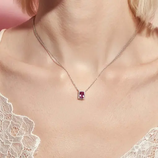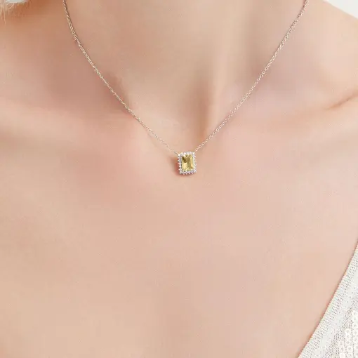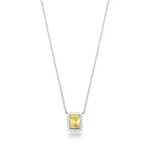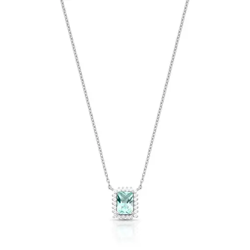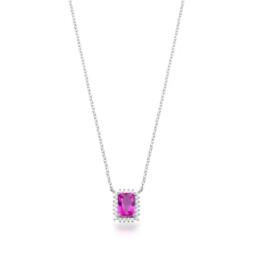 COLAR COM PINGENTE CRISTAL RETANGULAR E ZIRCÔNIAS PRATA RODINADA