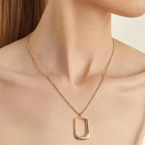 COLAR COM PINGENTE RETANGULAR GEOMÉTRICO BANHADO A OURO