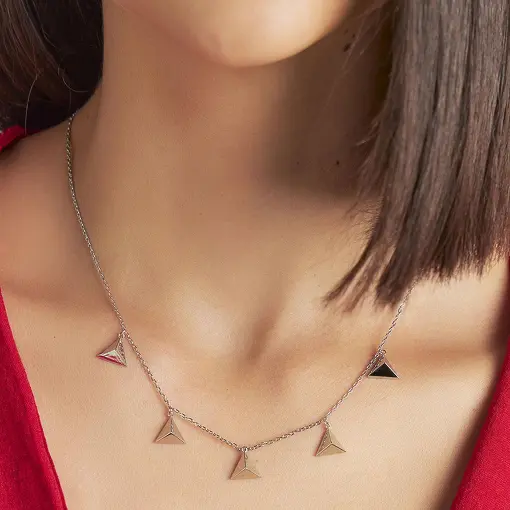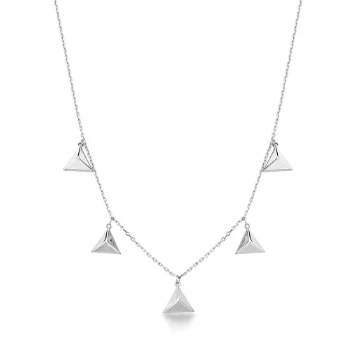 COLAR COM PINGENTES TRIÂNGULOS PÊNDULOS LISOS BANHADO A RÓDIO