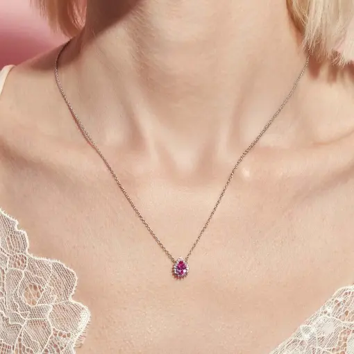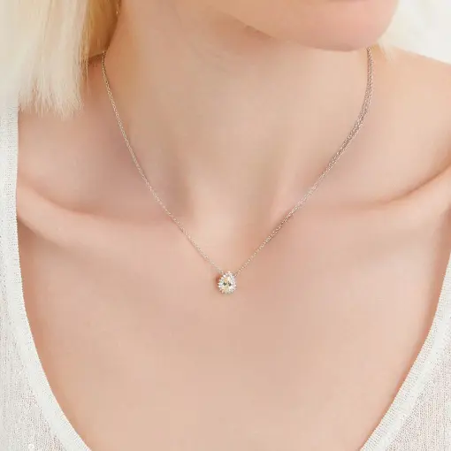 COLAR COM CRISTAL DE GOTA E ZIRCÔNIAS PRATA RODINADA