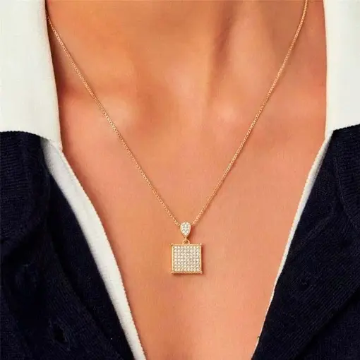 COLAR COM PINGENTE QUADRADO CRAVEJADO BANHADO A OURO