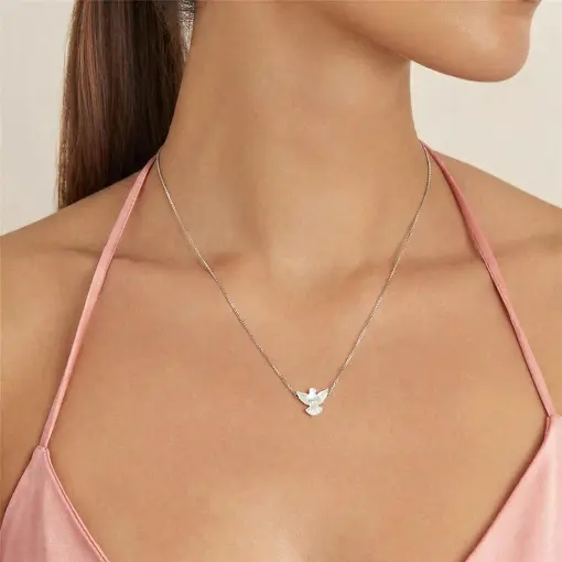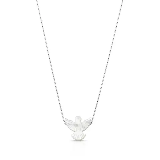 COLAR COM PINGENTE DE ESPÍRITO SANTO PRATA RODINADA