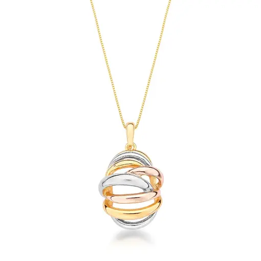 COLAR COM PINGENTE OVAL OITO VOLTAS BANHADO A TRÊS TONS
