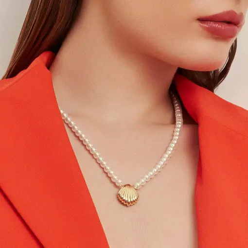 COLAR DE PÉROLAS SHELL COM PINGENTE DE CONCHA TEXTURIZADA