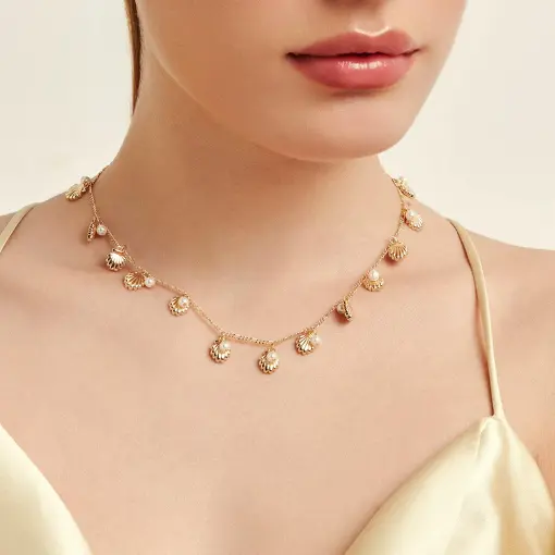 COLAR COM PINGENTES DE CONCHAS E PÉROLAS SHELL