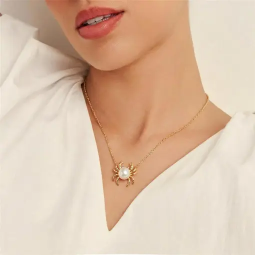 COLAR COM PINGENTE DE CARANGUEJO E PÉROLA SHELL