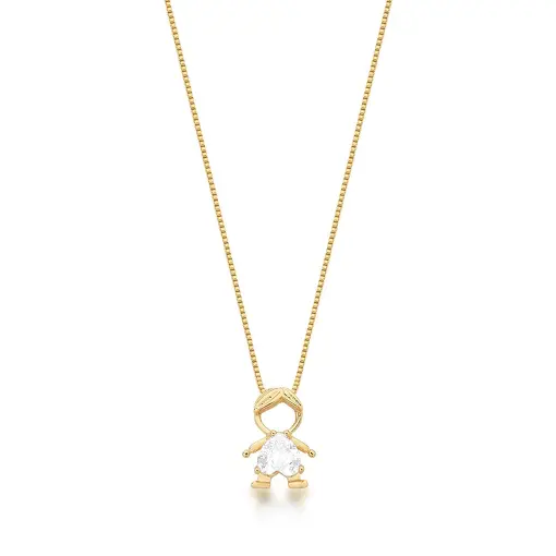 COLAR COM PINGENTE MENINO VAZADO E CRAVEJADO BANHADO A OURO