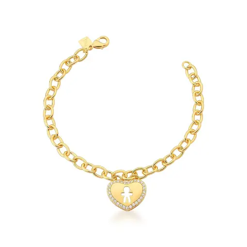 CORRENTE COM PINGENTE DE MENINO E CORAÇÃO BANHADA A OURO