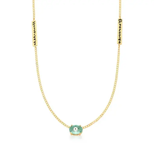 CORRENTE COM PINGENTE DE OLHO GREGO PRASIOLITA BANHADA A OURO