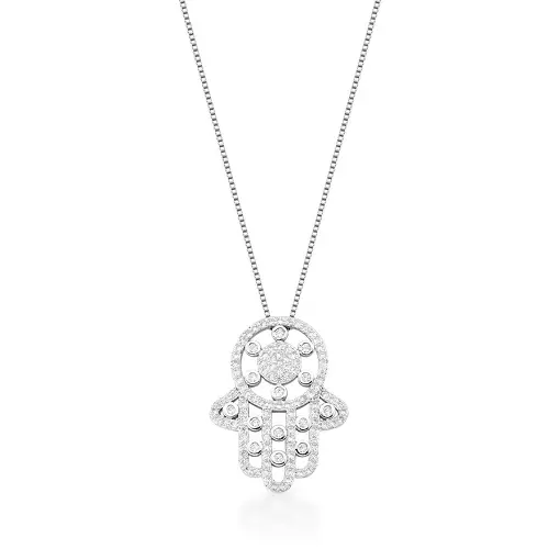 PINGENTE MÃO DE FÁTIMA COM ZIRCÔNIAS BRANCAS PRATA RODINADA
