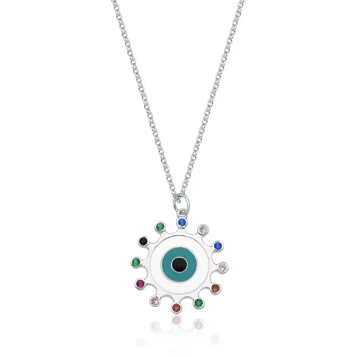 CHOKER COM PINGENTE DE OLHO COLORIDO FOLHEADA A RÓDIO