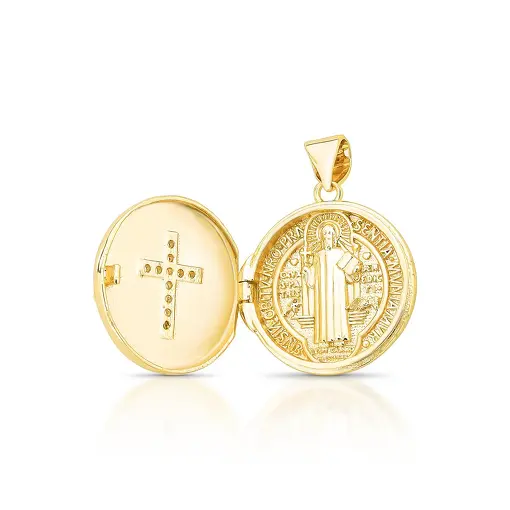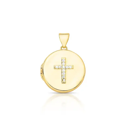 PINGENTE RELICÁRIO REDONDO DE CRUZ COM ZIRCÔNIAS
