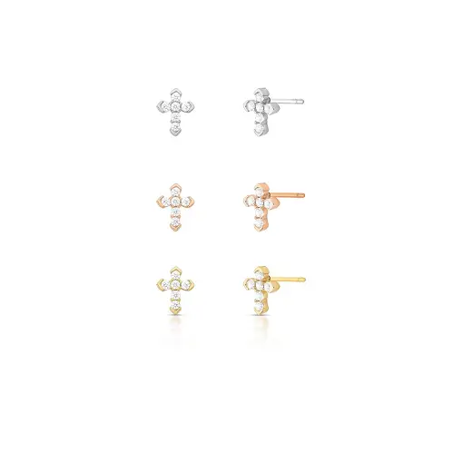 KIT TRÊS PARES BRINCO CRISTAL TRIANGULAR BRANCO BANHADO A OURO