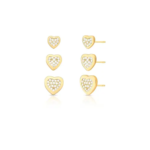 TRIO DE BRINCOS DE CORAÇÃO CRAVEJADOS DE ZIRCÔNIAS