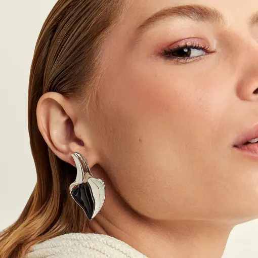 BRINCO EAR CUFF CURVO COM CRISTAIS E ZIRCÔNIAS PRATA RODINADA